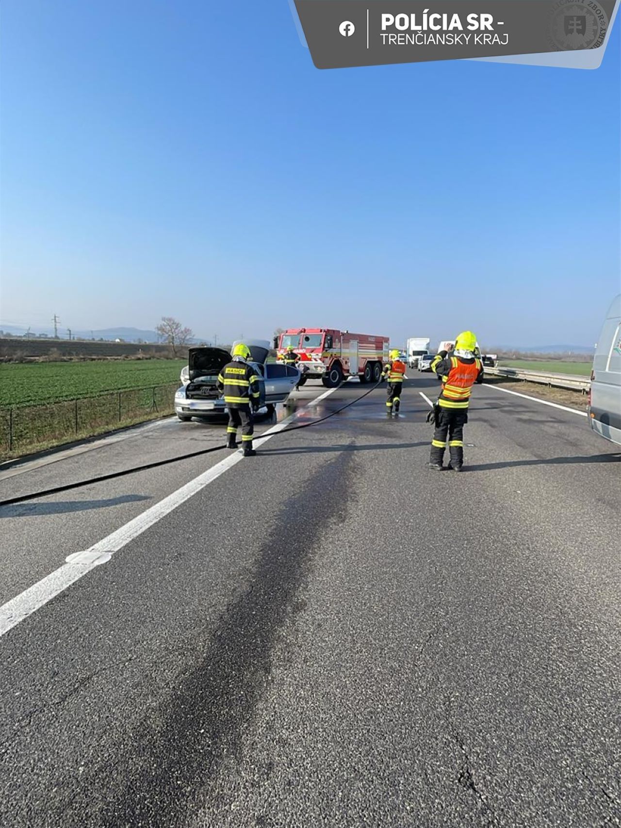 Diaľnica D1 pri Prejte je pre požiar auta prejazdná len v jednom pruhu